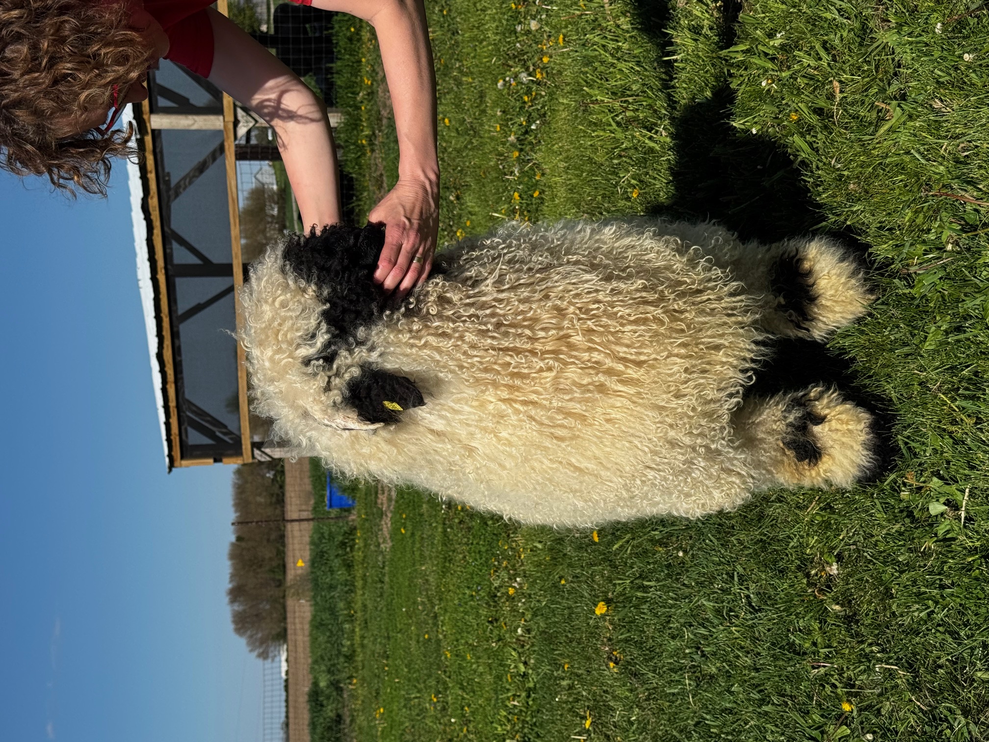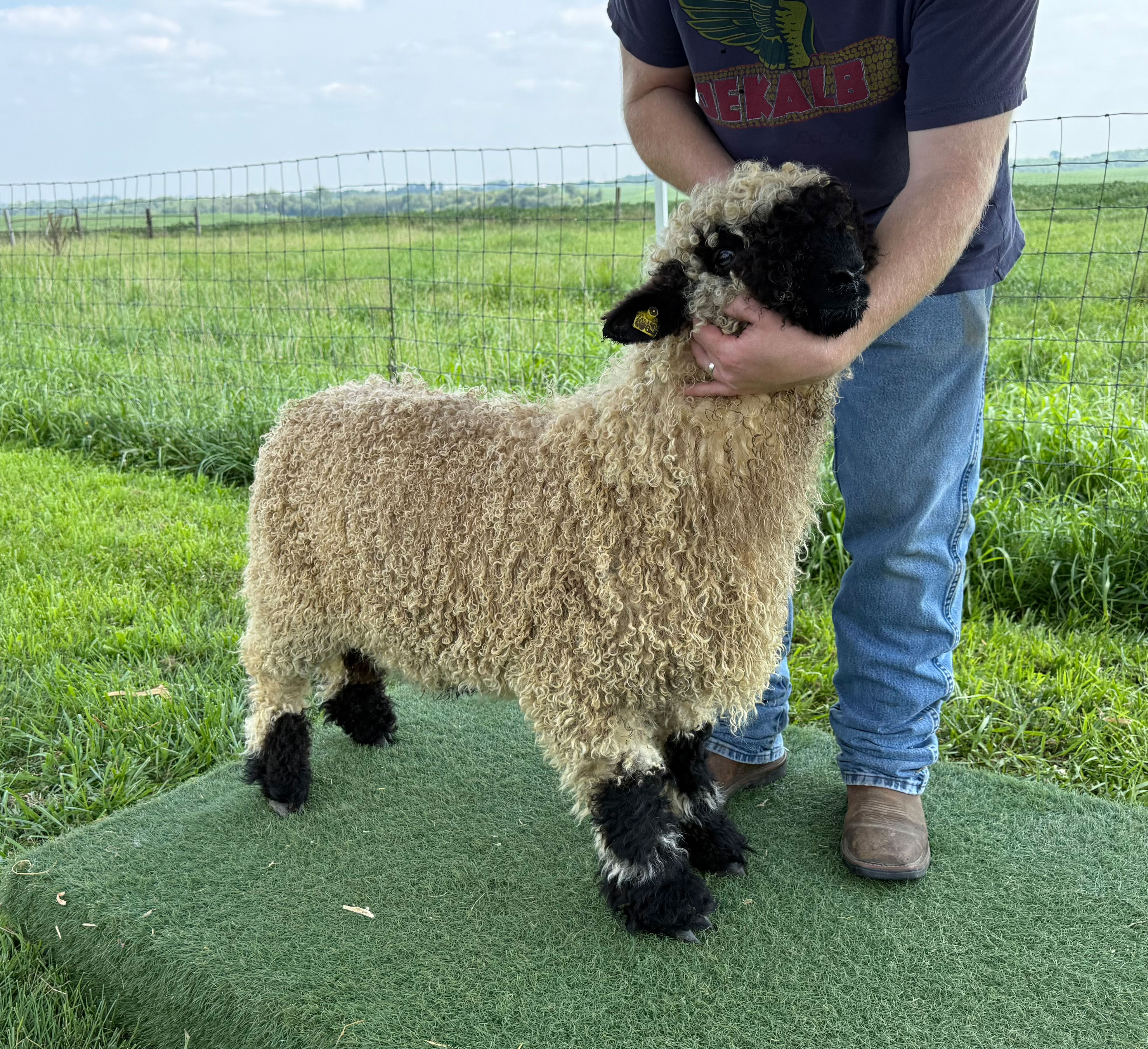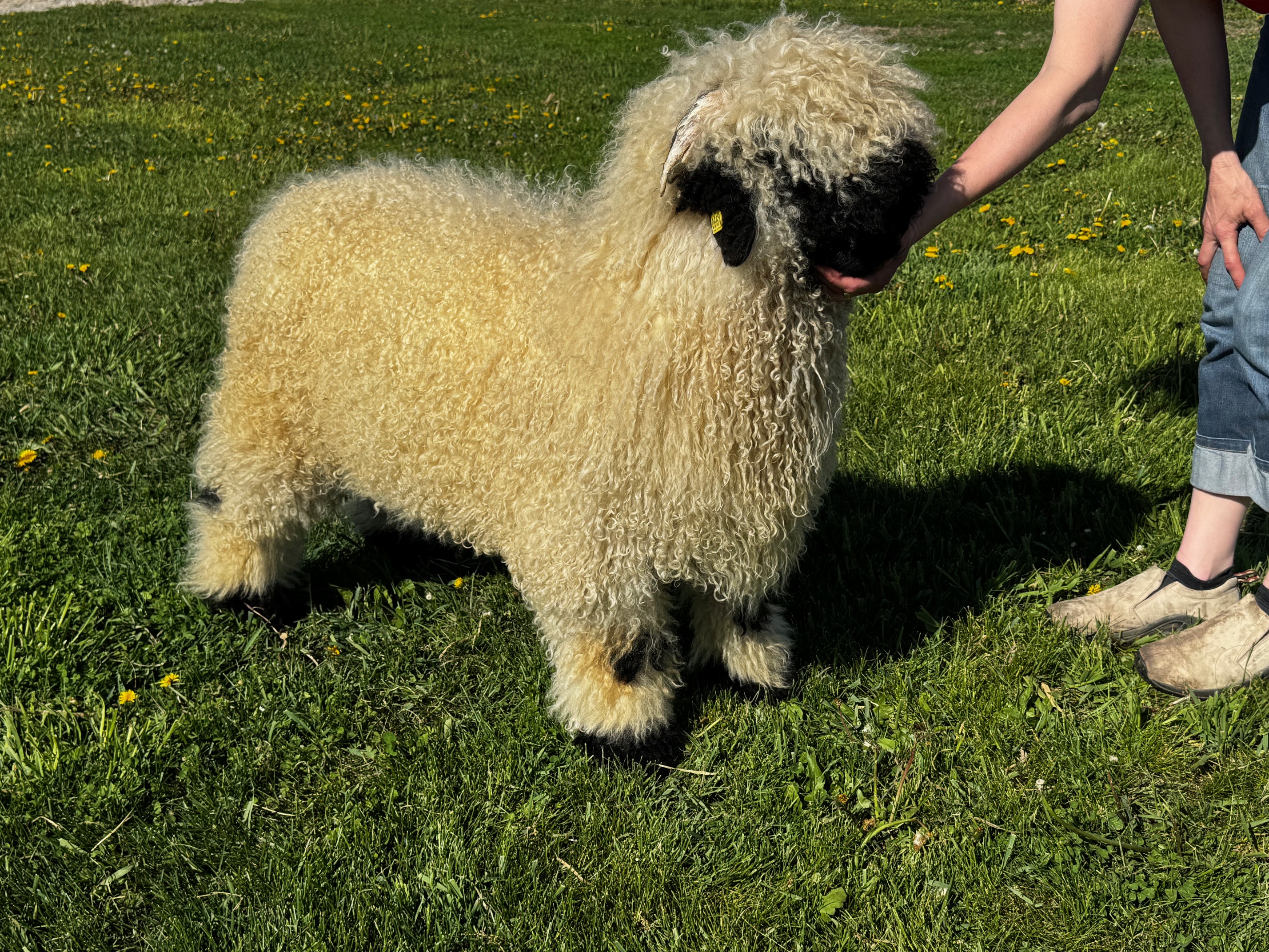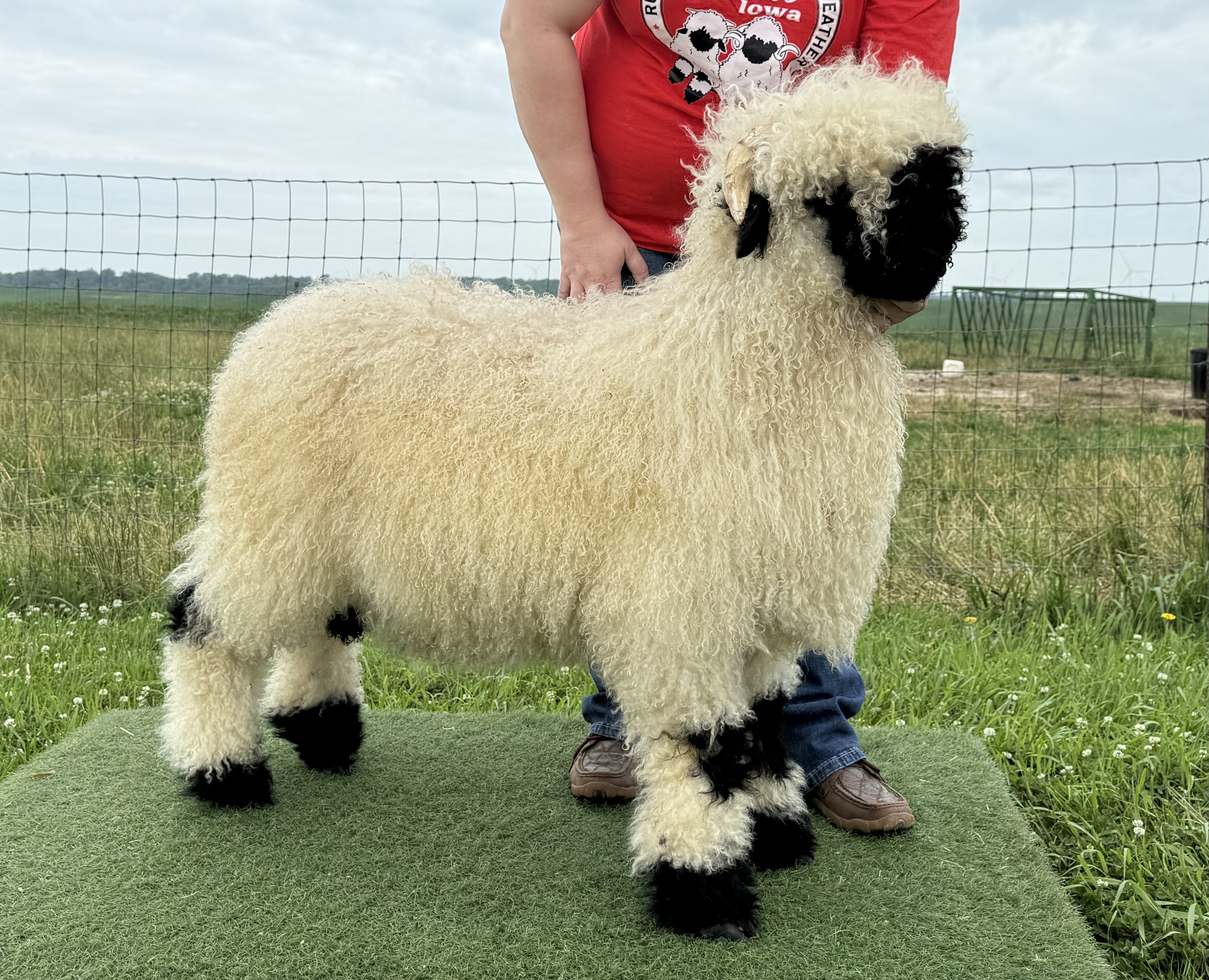 🏆Award-Winning Wether! Overall Champion Wether! … IOWA MOWGLI! Check out this handsome fella! Picture perfect PUREBRED Valais Blacknose! Mowgli was the Champion Purebred Wether and Overall Champion Wether at the 2025 USA National Valais Blacknose Sheep Show, Des Moines, Iowa. Wethers are friendlier and make great pets! Mowgli would love to be your spoiled pasture pet and beautiful lawn ornament. He would also make a great companion for another sheep. 🤩Better yet, make him your PR spokesman and show him off at public events! If you don’t, we will!