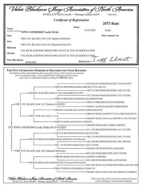 - Grand Champion Purebred Ram and Supreme Champion Purebred of the 2024 USA National Valais Blacknose Show and Grading